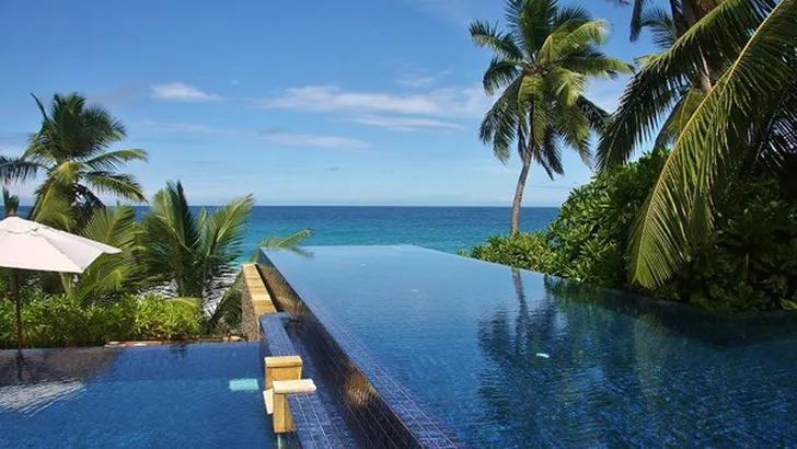 In de Seychellen ligt het Banyan Tree resort. Een paradijselijk optrekje aan een wit strand met een azuurblauwe zee. We laten het aan je zien omdat het er ronduit schitterend uitziet. En omdat we wilden dat we hier nu waren. Omdat we vinden dat we dit verdienen. Verdorie.