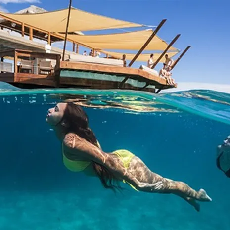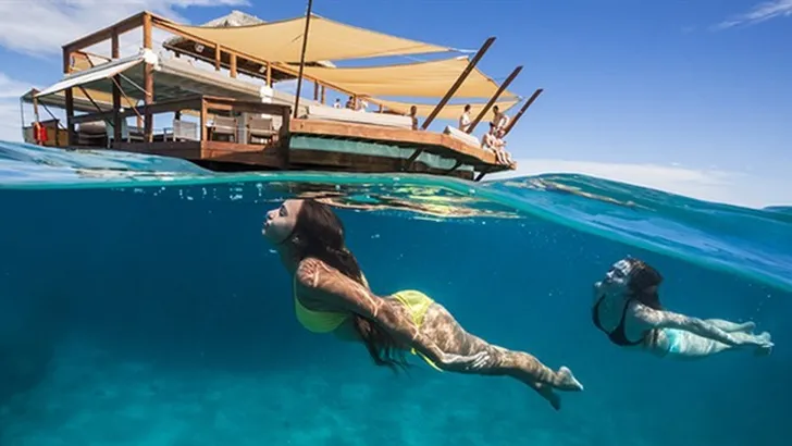 Ultiem relaxen op drijvende bar in Fiji