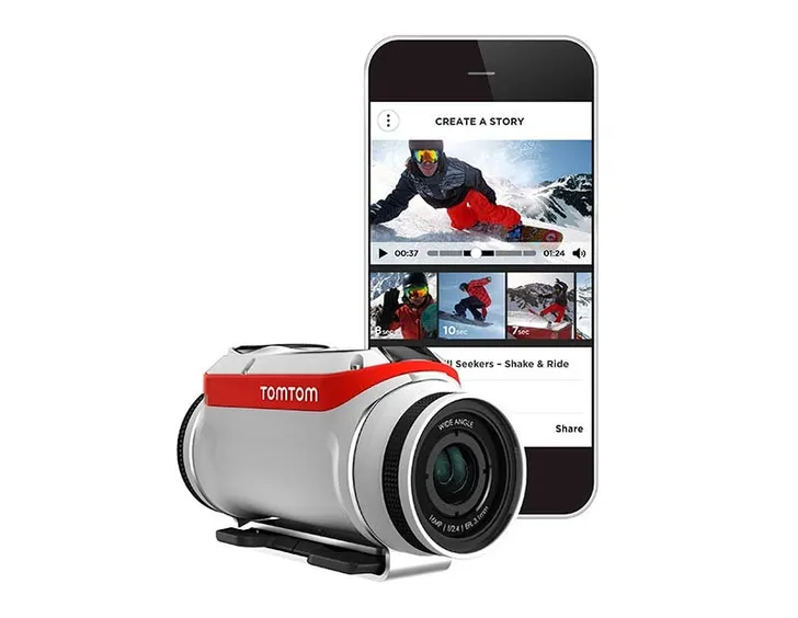 En daar heb je na een hele dag in de weer zijn, misschien niet zo veel geduld voor. Een (heel) globale vuistregel voor het monteren van films, is dat je per minuut eindresultaat een uur kwijt bent aan montage. Hier heb je natuurlijk geen zin in en TomTom neemt je heel veel werk uit handen. Omdat hij alle hoogtepunten al heeft geselecteerd, kan hij deze zelf makkelijk achter elkaar zetten voor een spectaculaire film. In een handomdraai heb je je eindmontage. Letterlijk, door de bijbehorende app te openen en je telefoon te schudden, gaat hij zelf monteren. En met diezelfde app kun je de video gelijk delen met je vrienden.