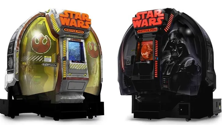 De game pod is 1,88 meter lang, 1,62 diep en 2,54 meter hoog. Je moet dus nog wel wat ruimte overhebben in je mancave. Gelukkig hoef je dan niet meer naar Scheveningen om in de arcade tussen de kinderen te spelen. Je kunt de speelautomaat krijgen in twee looks: Darth Vader en Rebel Alliance. Niet alleen aan het uiterlijk is gedacht. Met trilfuncties in de controllers en de stoel, aangevuld met een ventilator en een 5.1 surround set, krijg je ook de feels and sounds bij acceleratie, explosies en botsingen.