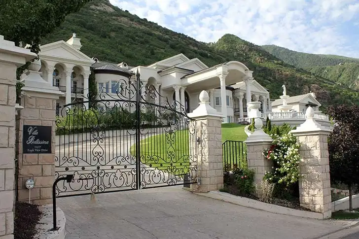 Deze villa heeft 22 suites en een buitenterras, een werkkamer, een zwembad, tennis- en basketbalvelden, een spa en een fitnesscentrum om alle cocktails aan de bar er weer af te sporten. Het stulpje kost 122.277 per week. Das weer andere koek dan Rimini.