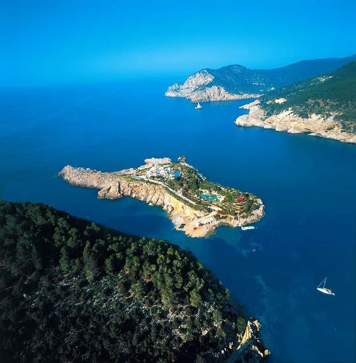 Je eigen hacienda! Je hebt toegang tot een subtropische lagoon en er is een verborgen grot dat is omgebouwd tot een spa. Je hebt een eiland helemaal voor jezelf. Ben je het Robinson Crusoë deluxe-gevoel beu, dan ben je binnen de kortste keren ook op Ibiza.