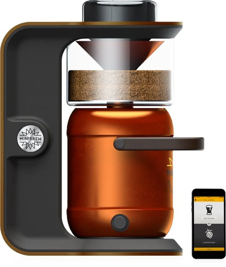 De MiniBrew is een alles-in-één-apparaat. Hij maakt de wort (basisingrediënt van bier), koelt deze, laat het gisten en conditioneert het allemaal in die ene machine. Het enige wat jij toe moet voegen is water, hop, mout, gist en eventueel kruiden voor je eigen meesterrecept. De slimme software van MiniBrew doet de rest. Als laatste ingrediënt voeg je een portie geduld toe. Je brouwsel zal minstens zeven dagen fermenteren. Wil je een dubbel, triple of zelfs quadriple maken, dan moet je je geduld nog meer op de proef stellen. In de bijbehorende app (want alles heeft tegenwoordig een bijbehorende app) volg je het proces en deel je jouw recept met de rest van de wereld.