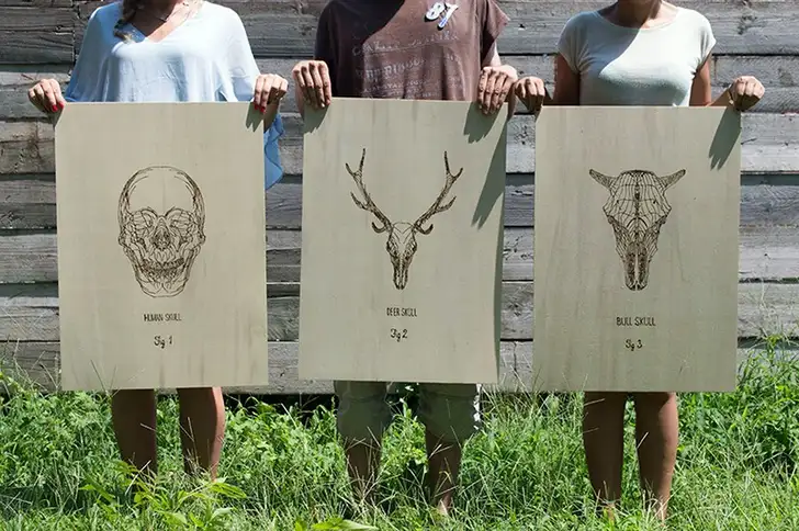 De lens bundelt de zonnestralen op het item dat jij als canvas gekozen hebt. Het is hetzelfde principe waarmee je vroeger met een vergrootglas een fikkie stookte. Alleen maak je nu de prachtigste ontwerpen op hout, kurk, multiplex, leer en nog veel meer.