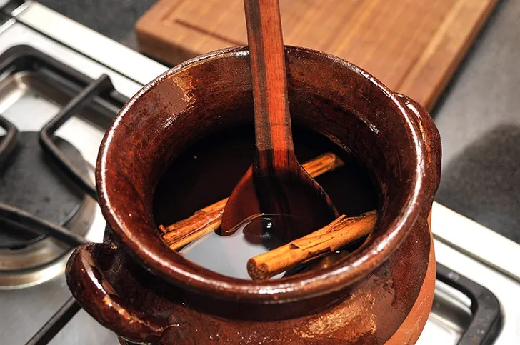 Geen koffie die je s ochtends even gauw maakt voor je halsoverkop naar je werk vertrekt. In een sauspannetje breng je de dark roast-koffie aan de kook met een kwart water, een kaneelstok, sinaasappelschil en bruine basterdsuiker. Als de suiker is opgelost laat je het nog een minuut of vijf staan voor je het in een kopje schenkt.
