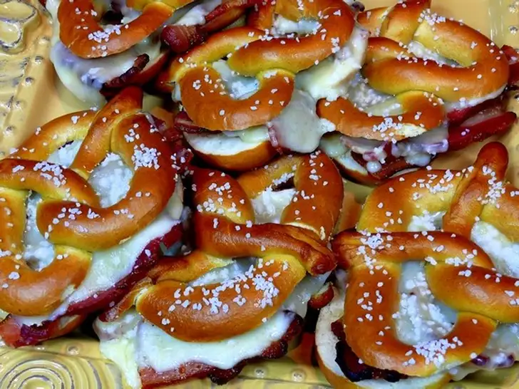 /Bacon-pretzel met gegrilde kaas