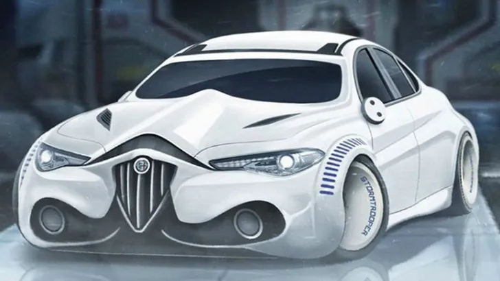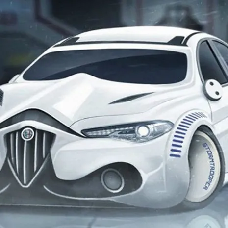 Hoe is bijvoorbeeld dit Stormtrooper-racemonster? Wij zouden deze versies van onze favoriete bolides in elk geval graag in de showroom zien staan.