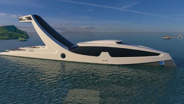 Verder vind je op dit absurde gevaarte meerdere loungeruimtes, barretjes, clubs en hot tubs. En zwoele nachten beleef je in de luxe suite op 38 meter hoogte. Wat de eventuele koper voor 's werelds grootste jacht moet betalen, is niet bekend. Iets met heel veel nullen in ieder geval, dat moge duidelijk zijn. Maar goed, fantaseren is ook leuk.