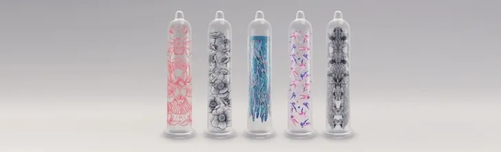 Het Franse bedrijf Made in Love adverteert met de slogan Let's make a condom beautiful. Nou daar krijgen we natuurlijk spontaan jeuk van. Maar ze doen het toch. Ze hebben een manier gevonden om een grafische print op een condoom te drukken waardoor je beste vriend voortaan voorzien van roze roosjes en eenhoorns het bed in kan. De ontwerpjes zijn erg vrouwelijk, maar he, als zij het maar leuk vindt toch? Dit kan alleen maar een uitvinding van twee vrouwen zijn. Het idee is leuk hoor, maar de uitvoering?