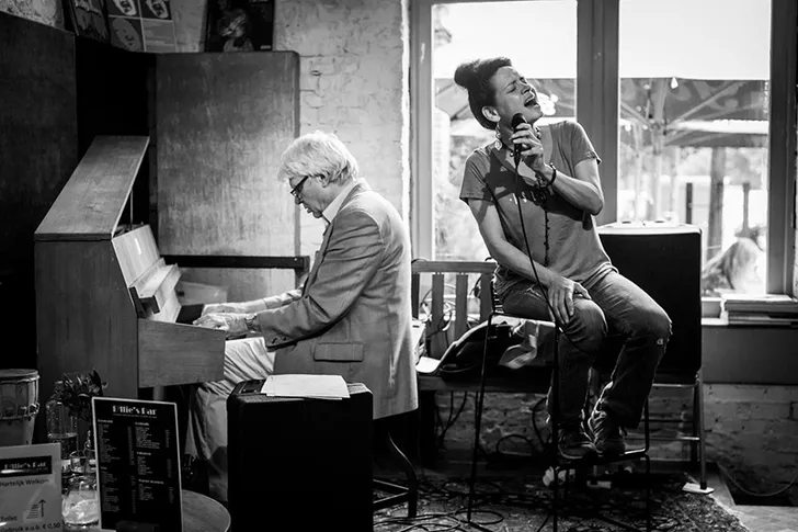De naam van de bar is afkomstig van één van de meest invloedrijke jazz-zangeressen: Billie Holiday. En over goede jazz-zangeressen gesproken: Mathilde Santing verzorgt met haar heerlijke stem de muziek tijdens deze zomerse avond. Achter Santing bespeelt een man de piano, waarnaast stapels oude jazzplaten liggen. Even wanen we ons in de jaren veertig.
