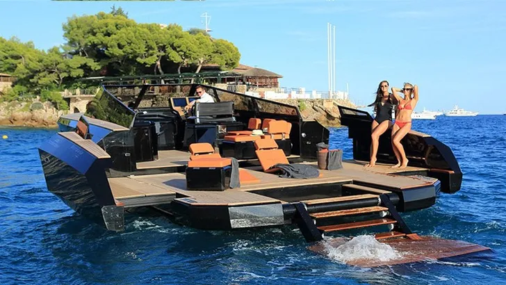 De Evo 43 is een minimalistisch designershoogstandje waarin de fenderhaken en het anker netjes worden weggewerkt. Daardoor blijven de lijnen van de Evo volkomen strak. Met slechts één druk op de knop van jouw telefoon klap je de achterzijde uit en maak je er een deck van 6,3 meter breed van. Als bonus krijgt het jacht met een beetje fantasie het uiterlijk van een ruimteschip uit Star Wars.