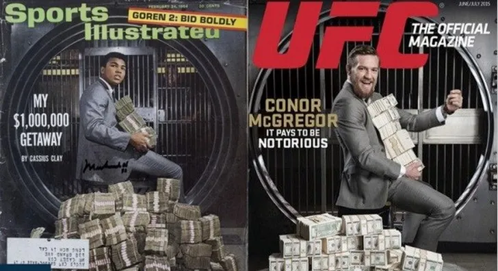 McGregor imiteerde de cover van Sports Illustrated waarop Ali in een kluis poseert naast een stapel dollarbiljetten. Ali keek destijds nog heel serieus, McGregor stond al lachend in dezelfde scene afgebeeld op de cover van UFC Magazine. Hij gaf toe vereerd te zijn de shoot van Ali na te mogen doen maar hij creëert liever zijn eigen merk.