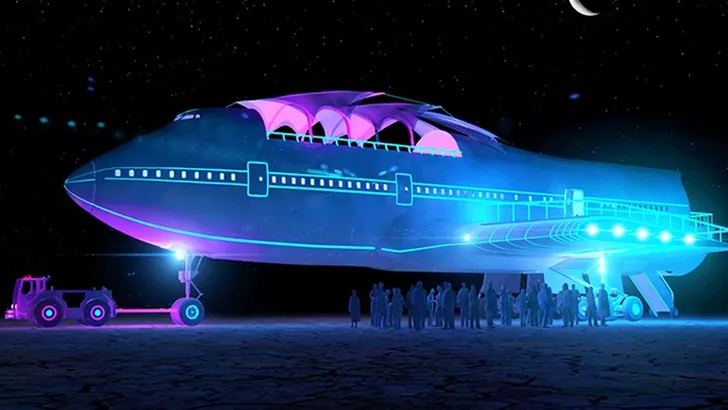 De non-profit organisatie Big Imagination Foundation knutselde 7 jaar aan een Boeing 747 om de ultieme party-spot te maken op Burning Man 2016.