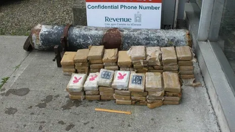 De torpedo is 1.8 meter lang en zat helemaal volgestouwd met het witte poeder, onderverdeeld in pakketten van 1 kilo.
