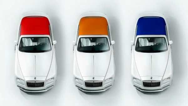 Specialisten op het gebied van Haute Couture ontwerpen samen met Rolls-Royce de bespoke-collectie. De Rolls-Royce Dawn - Inspired By Fashion komt standaard in het wit, maar je kunt kiezen uit extra accenten in Mugello Rood, Cobalto Blauw en Mandarin. Het lakproces duurt negen dagen, maar laten we er voor het gemak van uitgaan dat het resultaat er mag zijn.