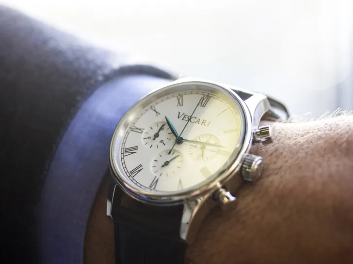 In Nederland schieten de horlogemakers tegenwoordig als paddestoelen uit de grond. En ze kunnen zich gewoon meten met het beste uit Zwitserland. Vescari Watch. Co, een jong Nederlands merk, komt met The Heritage Chronograph: een horloge met een klassieke, chique uitstraling, maar een buitengewoon zachte prijs. vescari.com / 99