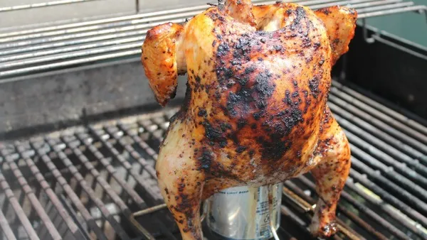 BEERCAN CHICKEN RECEPT 1 kip 2 blikken bier 50 gram dry rub snufje gedroogde rozemarijn