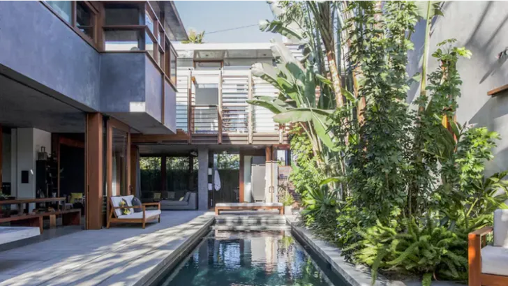 Goed, Hank Moody woonde er zelf niet. Dit stulpje was van zijn ex Karen en diens nieuwe vent Bill (en sexy dochter Mia die in de onderstaande video te zien is). Het huis biedt in het echt ruimte voor acht personen, heeft vijf badkamers, vier slaapkamers en twee toiletten. Het design is strak, modern en heeft een vrij creatieve insteek. In de buurt tref je vooral vooraanstaande kunstzinnige figuren zoals muzikanten, schrijvers en kunstenaars aan. Op zich verschilt dat dus niet heel veel met de serie Californication.
