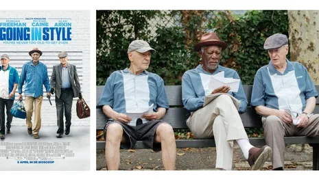 Oscar winnaars Morgan Freeman, Michael Caine en Alan Arkin zijn de oude vrienden Willie, Joe en Al. Wanneer hun pensioenfonds door een crisis de kraan dichtdraait besluiten ze voor het eerst in hun leven van het rechte pad af te stappen. Wanhopig om hun rekeningen te betalen en voor hun geliefden te kunnen zorgen, riskeren de drie mannen alles door te beginnen aan een gedurfde missie om de bank die er met hun geld vandoor is gegaan te beroven. Going in Style draait vanaf 6 april 2017 in de bioscoop.