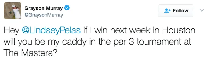 Soms moet je gewoon een risico nemen. Juist, durftevragen. De golfer Grayson Murray vroeg via Twitter aan Playmate Lindsey Pelas of ze zijn caddy wilt zijn tijdens een golftoernooi indien hij een wedstrijd in Houston zou winnen. Pelas, enthousiast als dat ze is, gaf aan dit best te willen doen. Dat moet pas echt wat motivatie opleveren. Een middagje in het zonnetje met Pelas achter balletjes aan rennen klink als een bucketlistdingetje. Dat Lindsey de perfecte vrouw is ondervonden we al tijdens een fotoshoot, ze studeerde met honors af aan haar school, haalde een bachelors graad, was te zien in wat reclames en stond achter de bar om haar studie te bekostigen. Ze is vooral lekker nuchter, we hopen dan ook dat Murray daadwerkelijk op de golfbaan van Pelas mag genieten. Zal wel een aardige afleiding zijn.