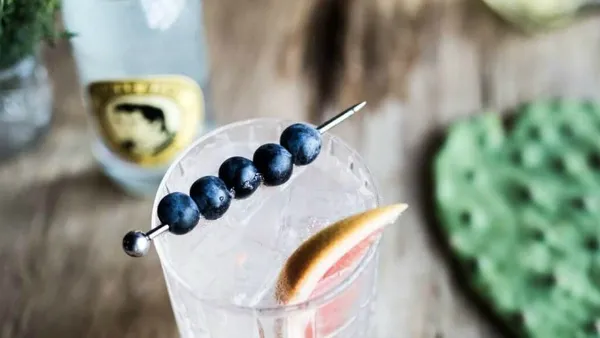 Schenk de tequila, grapefruitsap, limoensap en tabasco in een shaker met ijs, shake tot de shaker koud is, en strain de inhoud in een gekoeld glas. Voeg de tonic toe en garneer met de blauwe bessen aan een prikker en een schijfje grapefruit.