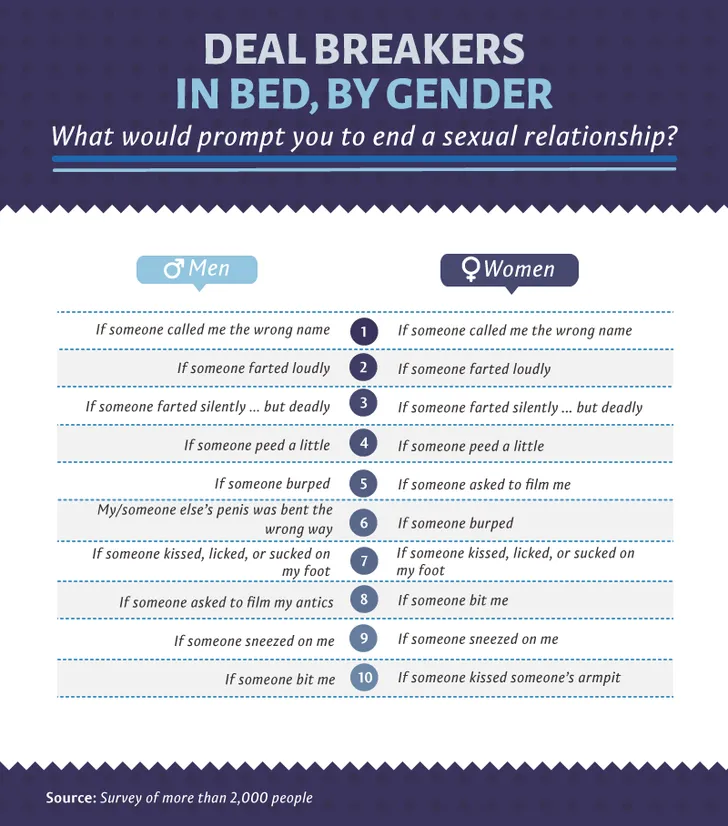 7. Een luide scheet laten tijdens de sex gebeurde 4,5% van de mensen.