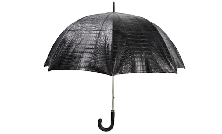 1. Regent het? Dan kun je natuurlijk niet gezien worden met zo'n lullig plu'tje van de Hema. Nee, dan moet je deze kopen: een paraplu van krokodillenleer. Want ja, als er iets goed tegen water kan, dan is het wel een krokodil. Kost ie? Een luttele $50.000.