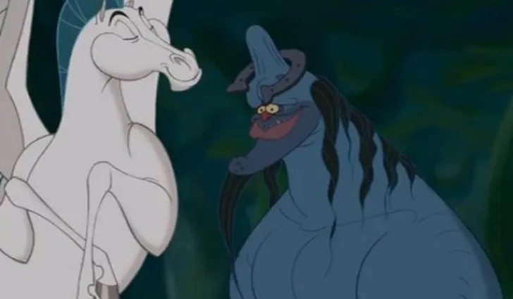 De Grieken en Romeinen waren niet vies van naakt (en een hoop vunzigheden) maar we wisten we niet dat Disney dit zo duidelijk zou volgen. Nadat een van de centaurs zijn hoofd gestoten heeft ontstaat er een wel erg vreemd gevormde bult op zijn voorhoofd.