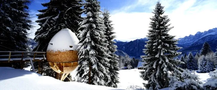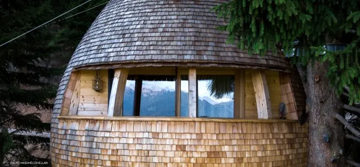 De Pigna – Italiaans voor dennenappel – is de naam van deze boomhut 2.0, ontworpen door Claudio Bertrama en zijn team. Het was eigenlijk niet eens de bedoeling dat ze daadwerkelijk gebouwd zouden worden, maar wij danken hem dit toch wel gedaan te hebben.