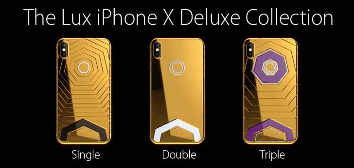 Zo heb je nu de Lux iPhone X Mono Collection. De iPhone X heeft met lasers gegraveerde lijnen met 25 karaat geel goud of 18 karaat rosé goud. Ook 950 platina is een optie. Het toestel zelf heeft 256GB aan opslag en een 5.8 inch OLED-scherm. Een jaartje garantie geven ze er dan ook nog bij, fijn van ze. Totale kosten? 7.495 dollar.