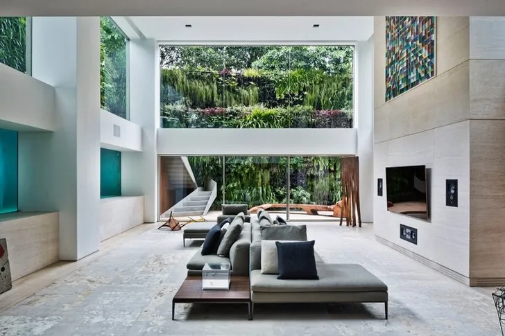 Een cliënt in São Paulo wilde een uniek huis hebben en benaderde de firma van Marques voor hetgeen je op de onderstaande foto's ziet. Damn, daar zien wij ons wel op vrijdagavond een feest geven waar Gatsby een puntje aan zou kunnen zuigen.